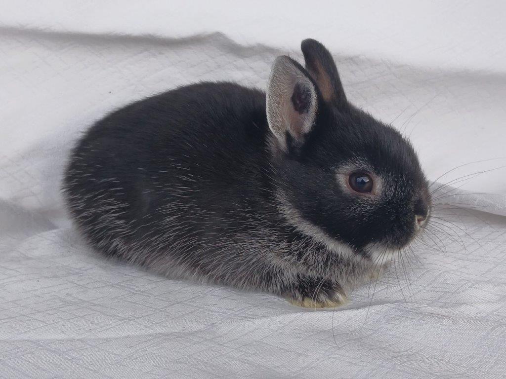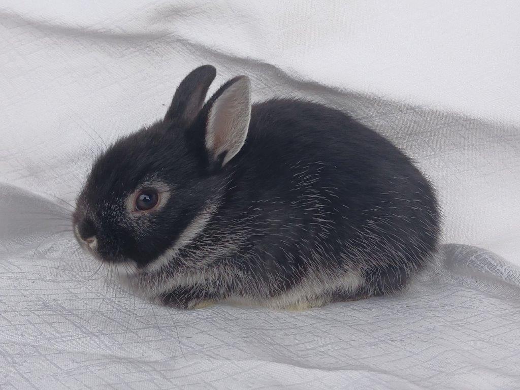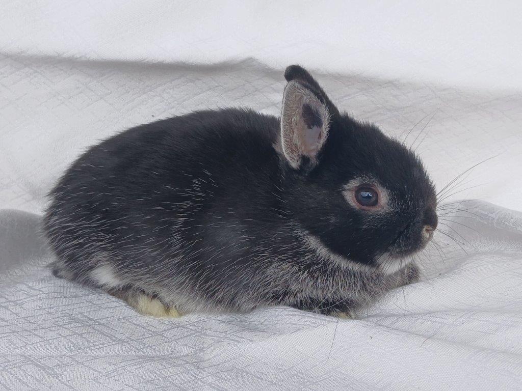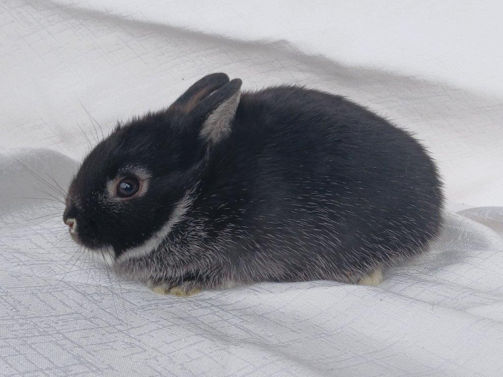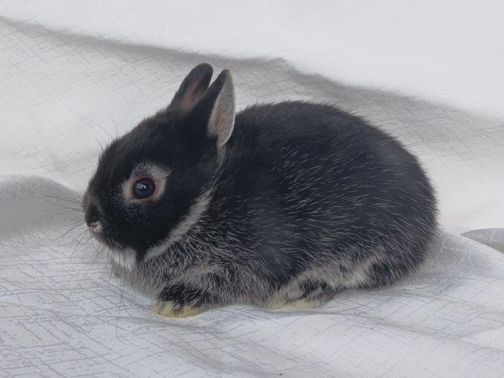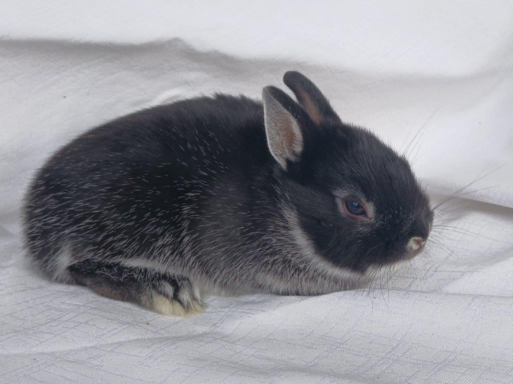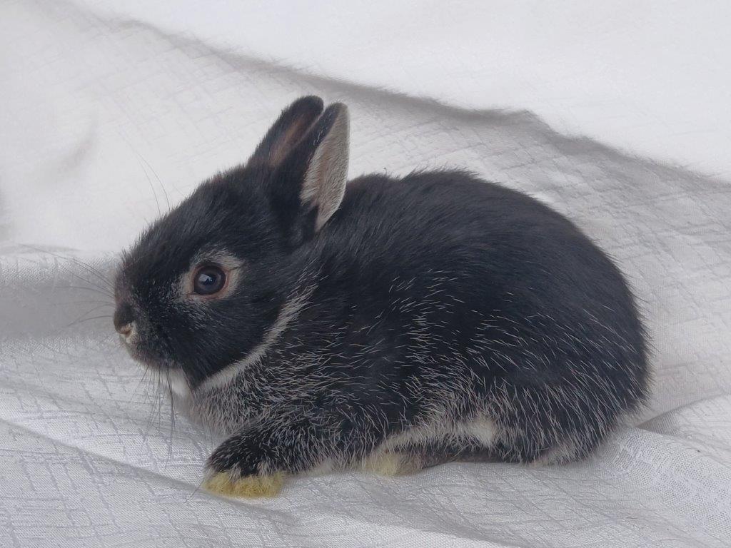 Narodila se nám miminka zakrslých bílopesíkatých černých králíčků od Kamélie a Merkura :-)